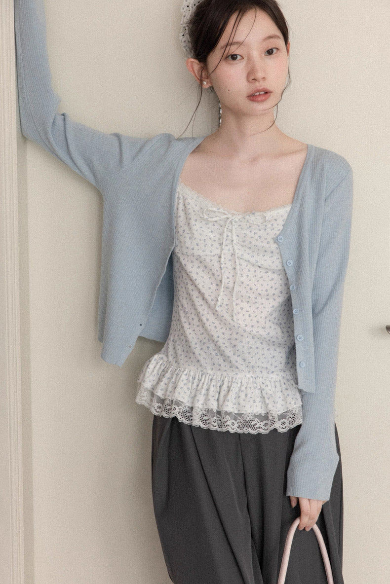 flower tops + blue cardigan set SI1080